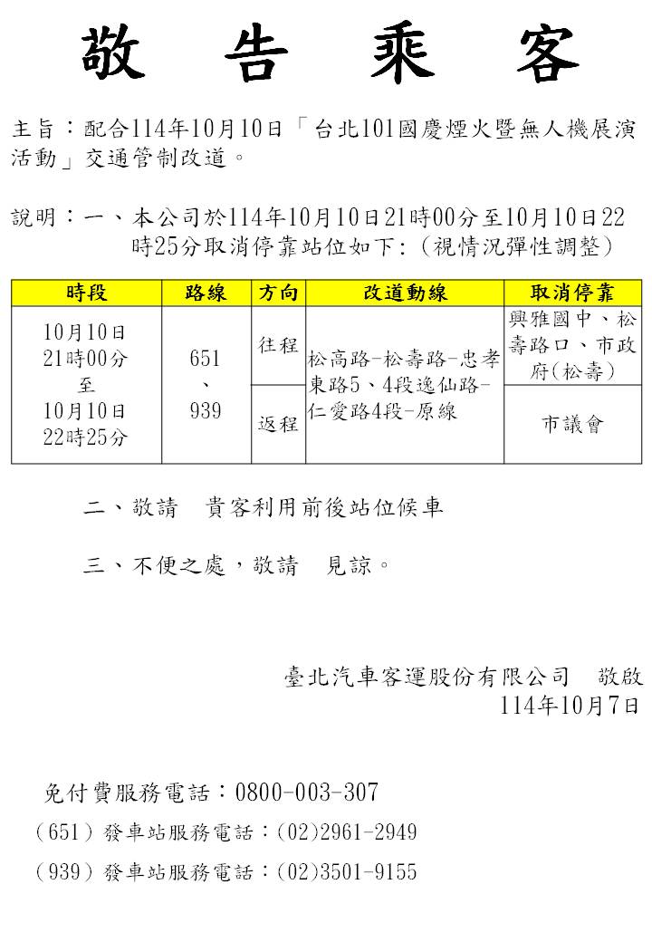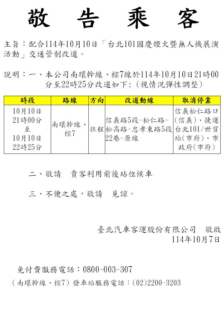 臺北客運客服中心(24小時全年無休)免付費電話:0800-003-307