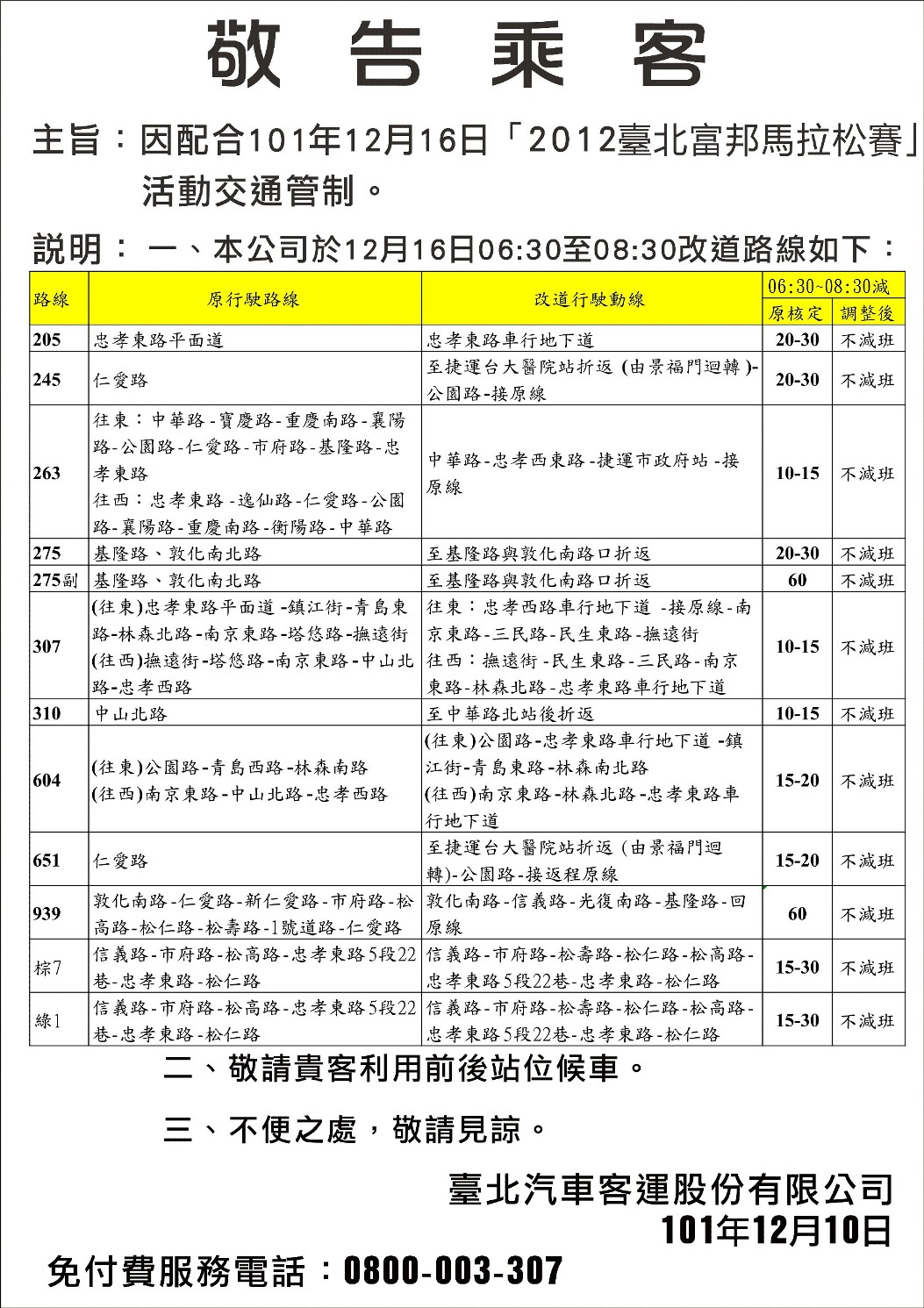 臺北客運客服中心(24小時全年無休)免付費電話:0800-003-307